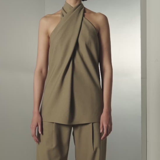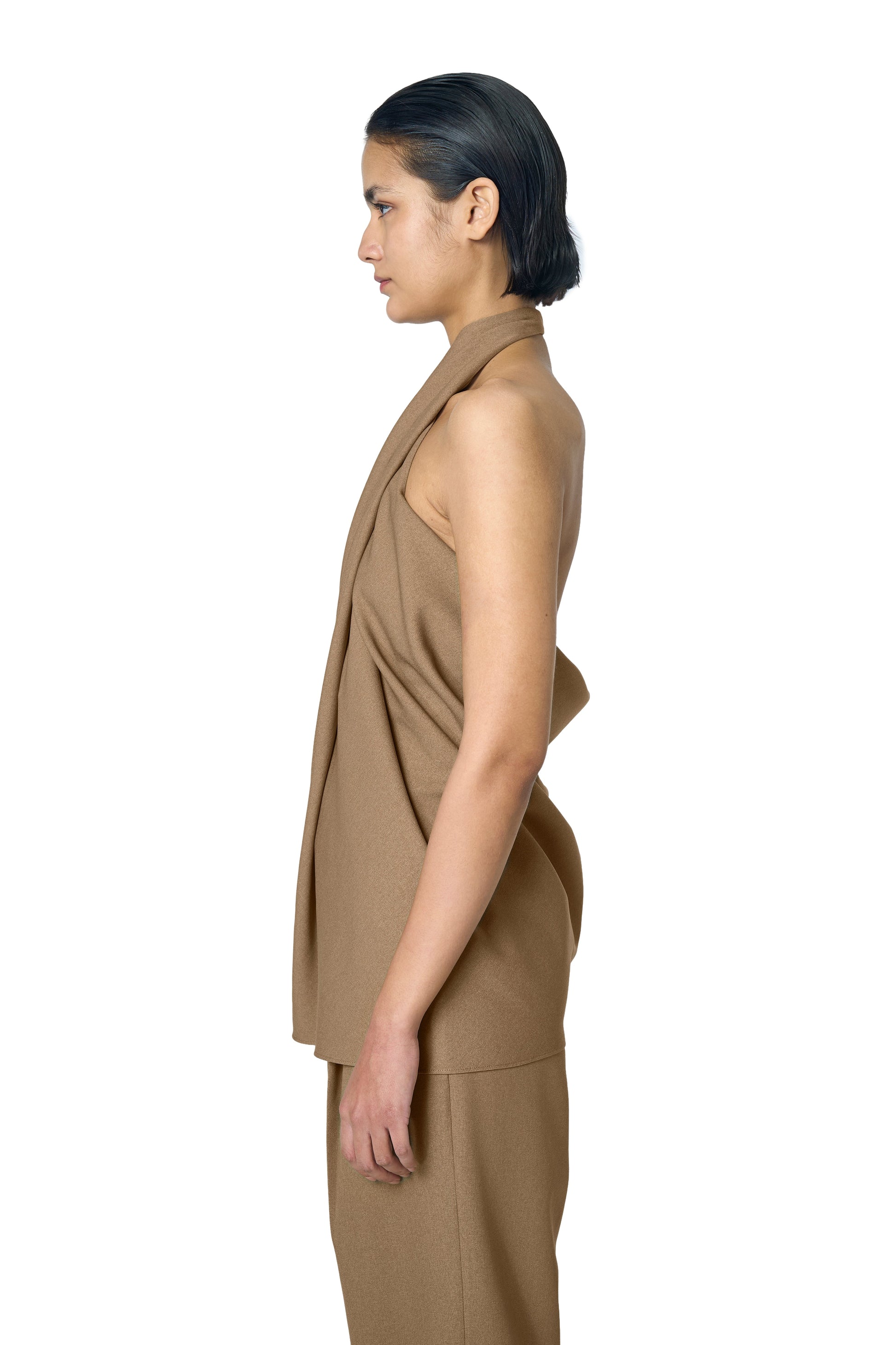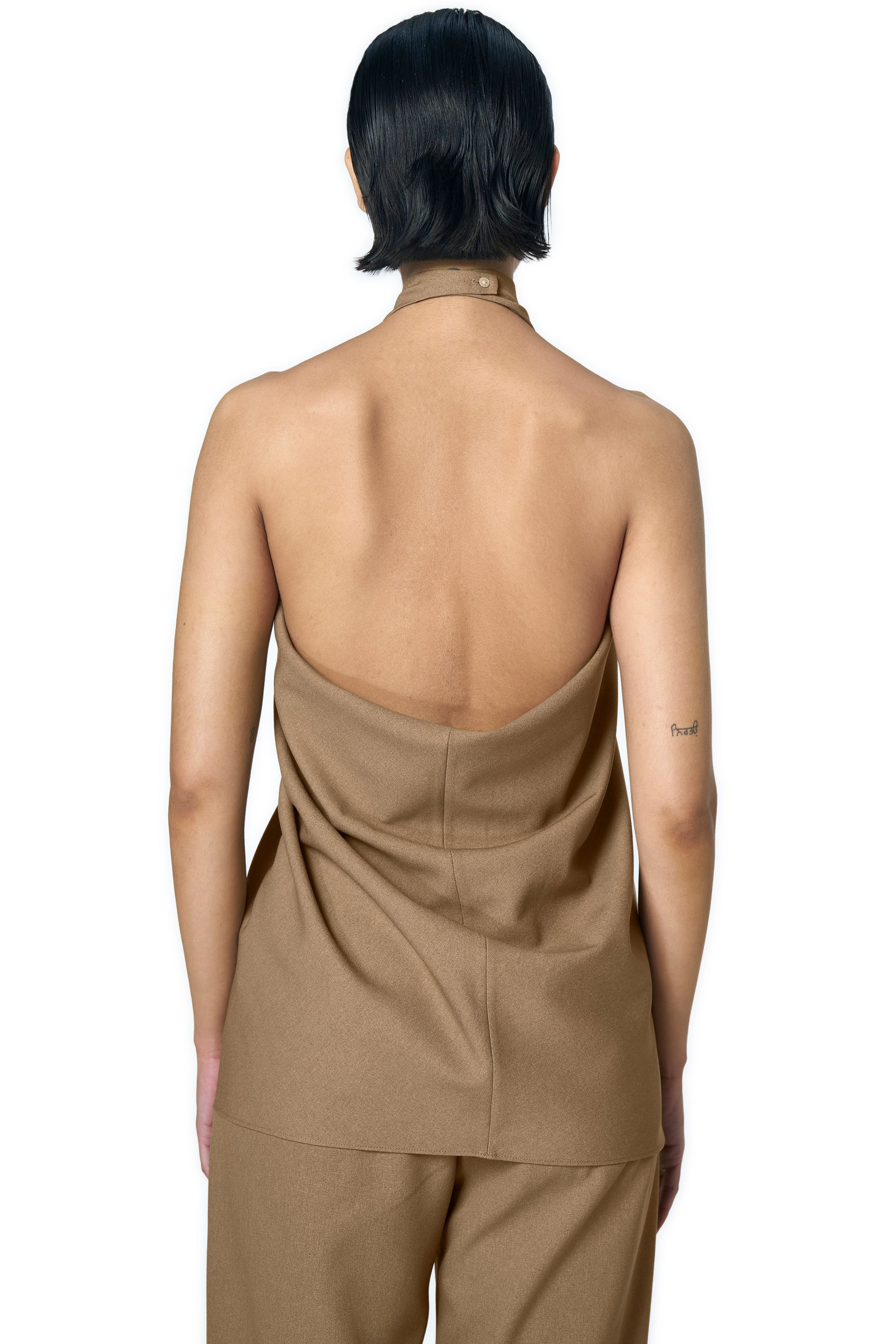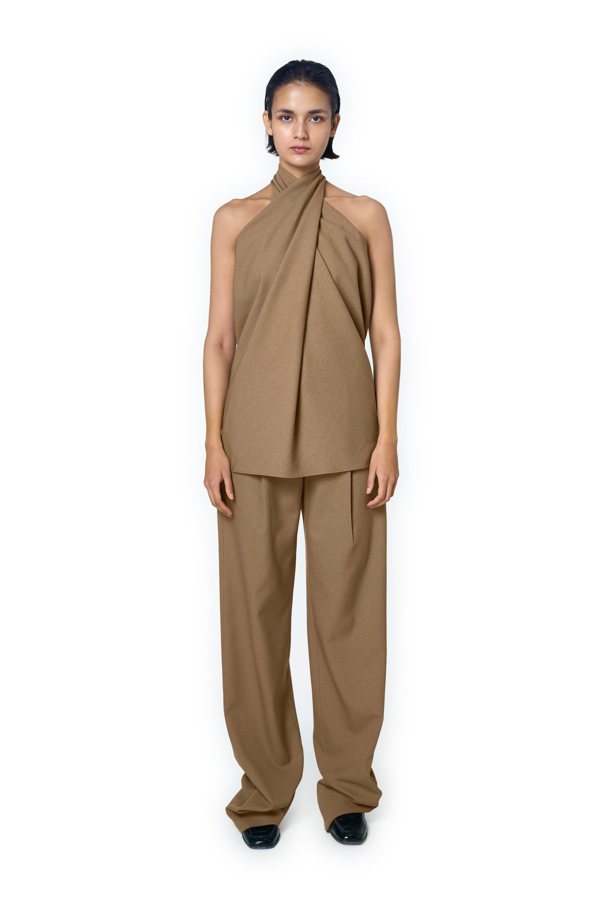 Ura's bestselling Beky Top returns in a tailored finish.The rich toffee coloured top features a halter back, perfect for showcasing a chic silhouette. Comes with a button closure at the back of the neck to ensure a secure and flattering fit. Pair it with Toni trousers for a complete look.