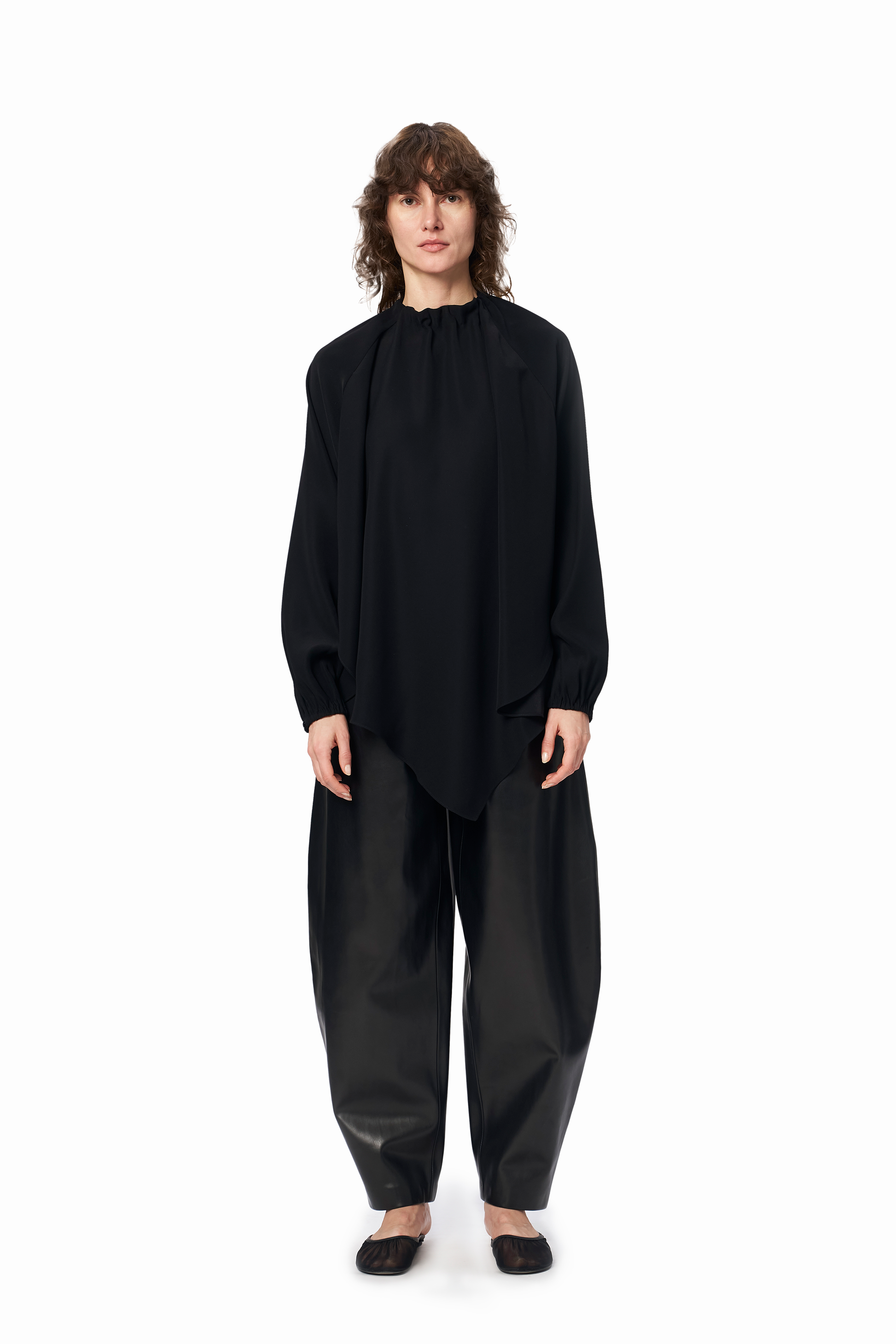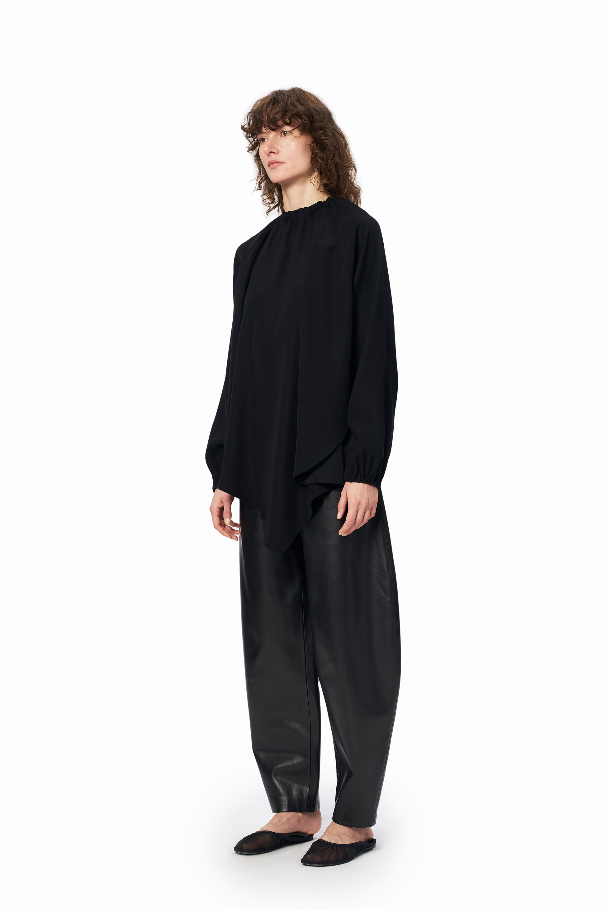 An effortless blend of ease and statement. The Hans Top is designed with a fluid, softly draped silhouette, a gathered neckline and an asymmetric hem that moves beautifully with the body. The open back introduces a striking yet refined contrast. Crafted in a smooth, lightweight fabric, it transitions seamlessly from day to evening - styled with denim or occasion wear.