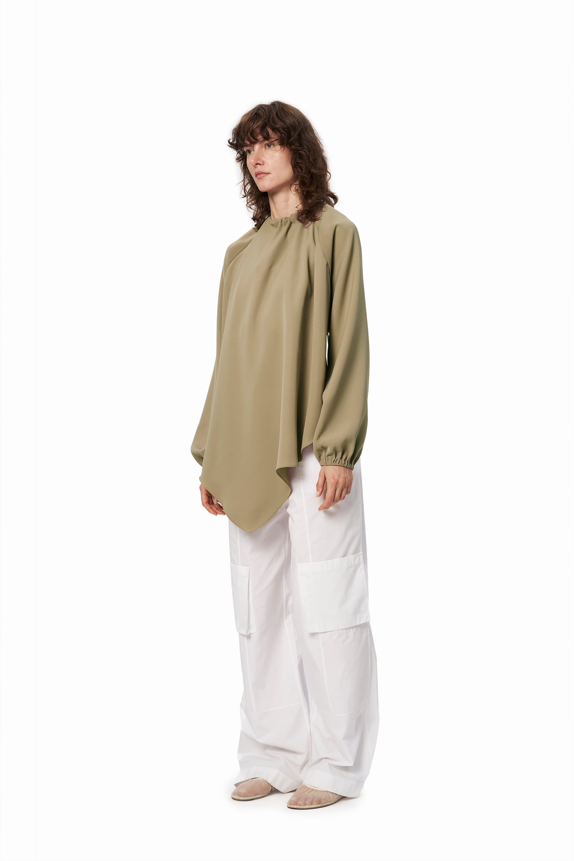 • Fluid silhouette with soft drape