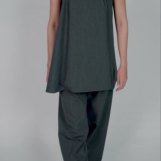 Crafted from a 100% wool, the Oliver Top features a striking square neckline at the front and a deep scoop back. The A-line shape allows for a playful drape. Pair it with Eva trousers for a complete look.