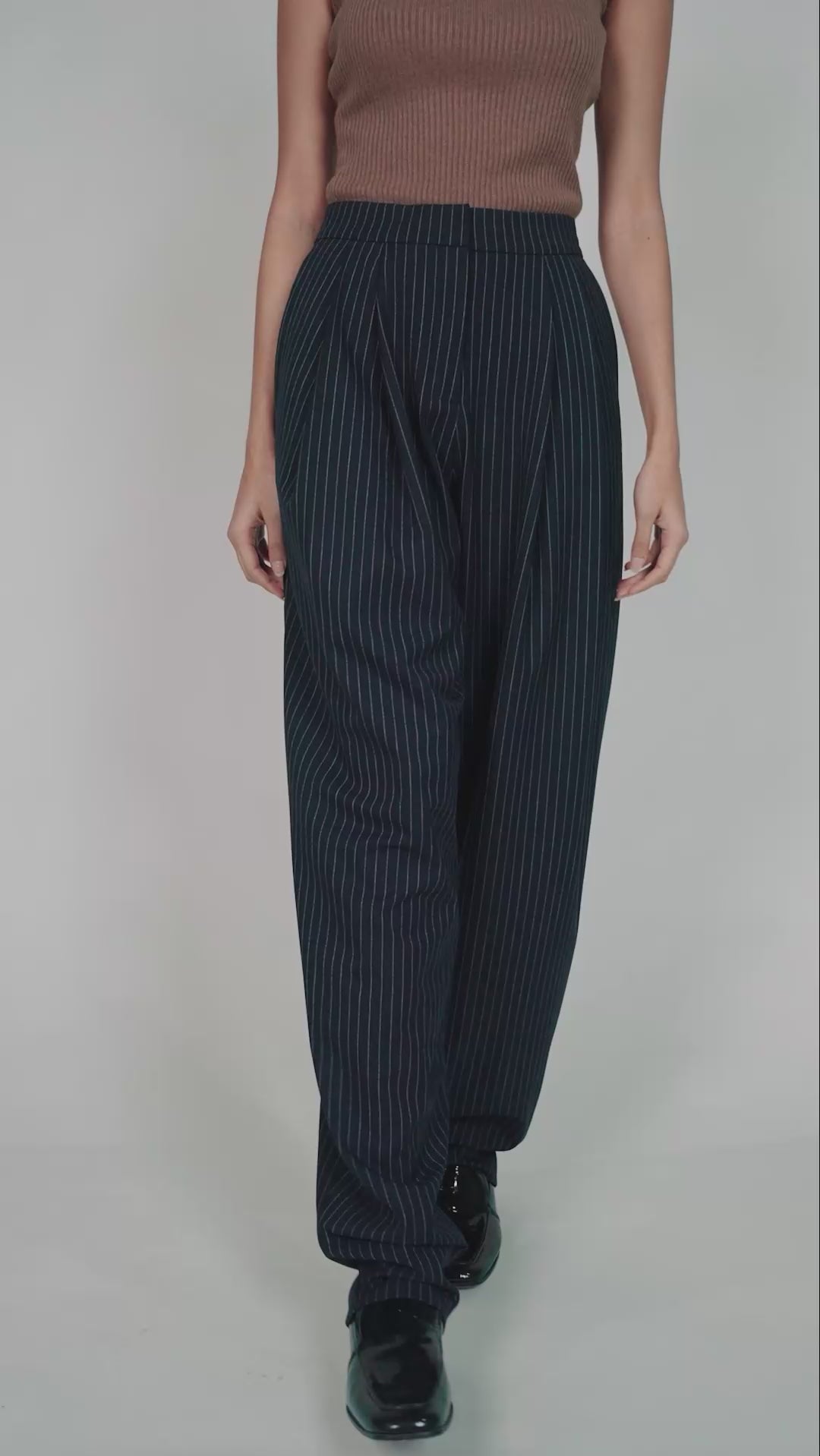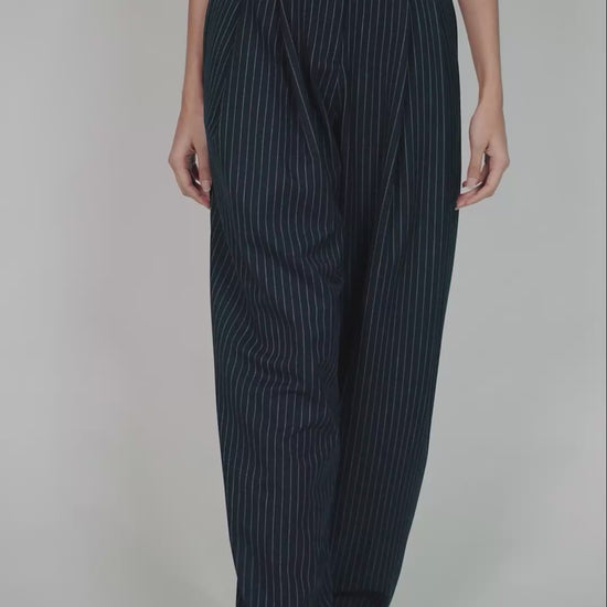 Cut from a fine pinstriped fabric, the Rene Trousers have a relaxed, high-waisted fit with pleats at the top. Pair yours with the matching Rene Top for a complete look.