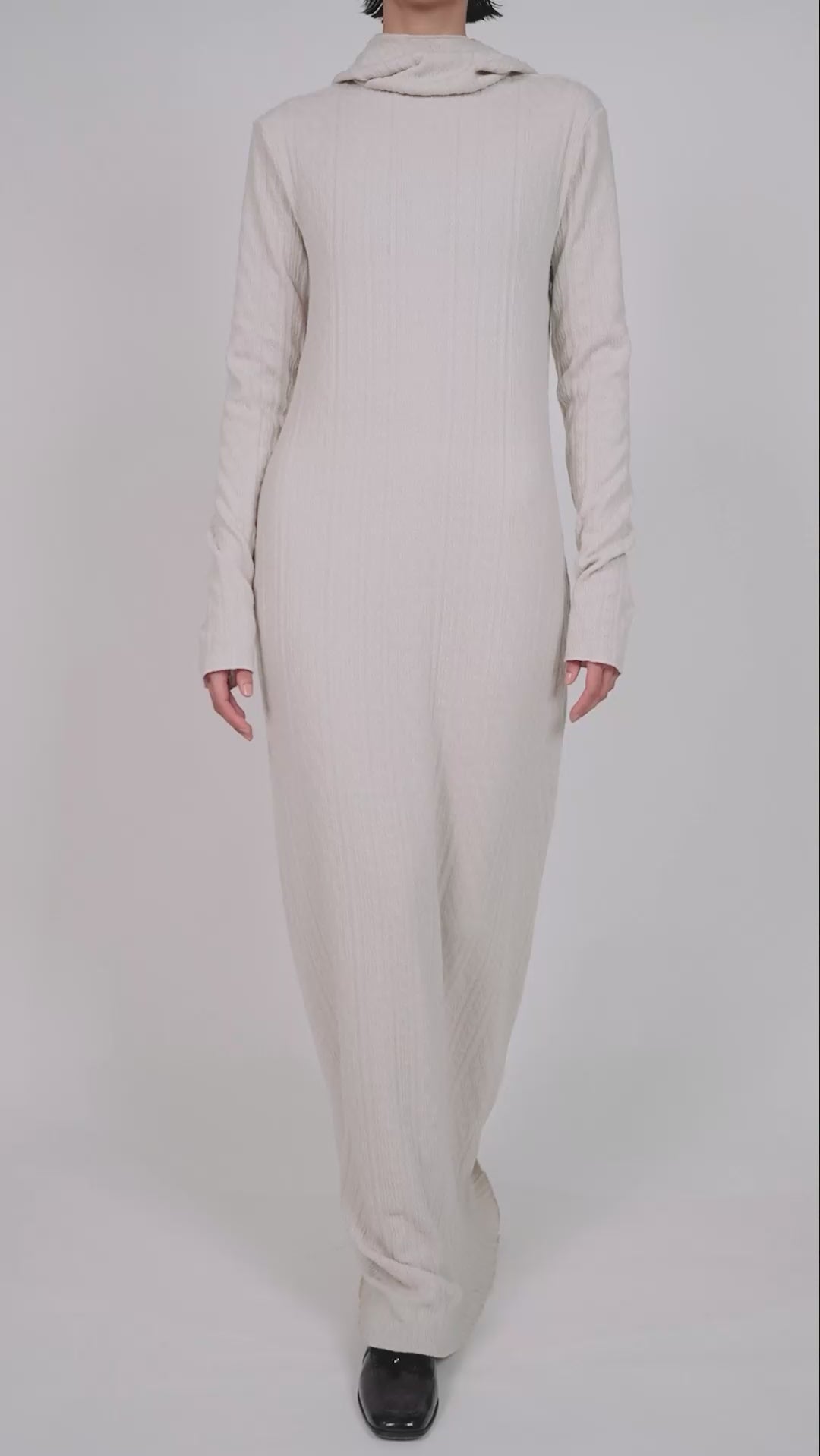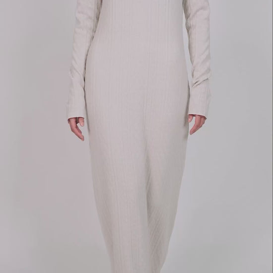 A full-length, long-sleeved dress in a cable-knit, giving it a cozy, sweater-like appearance. Easy to wear, the Tara Dress is your modern winter uniform.
