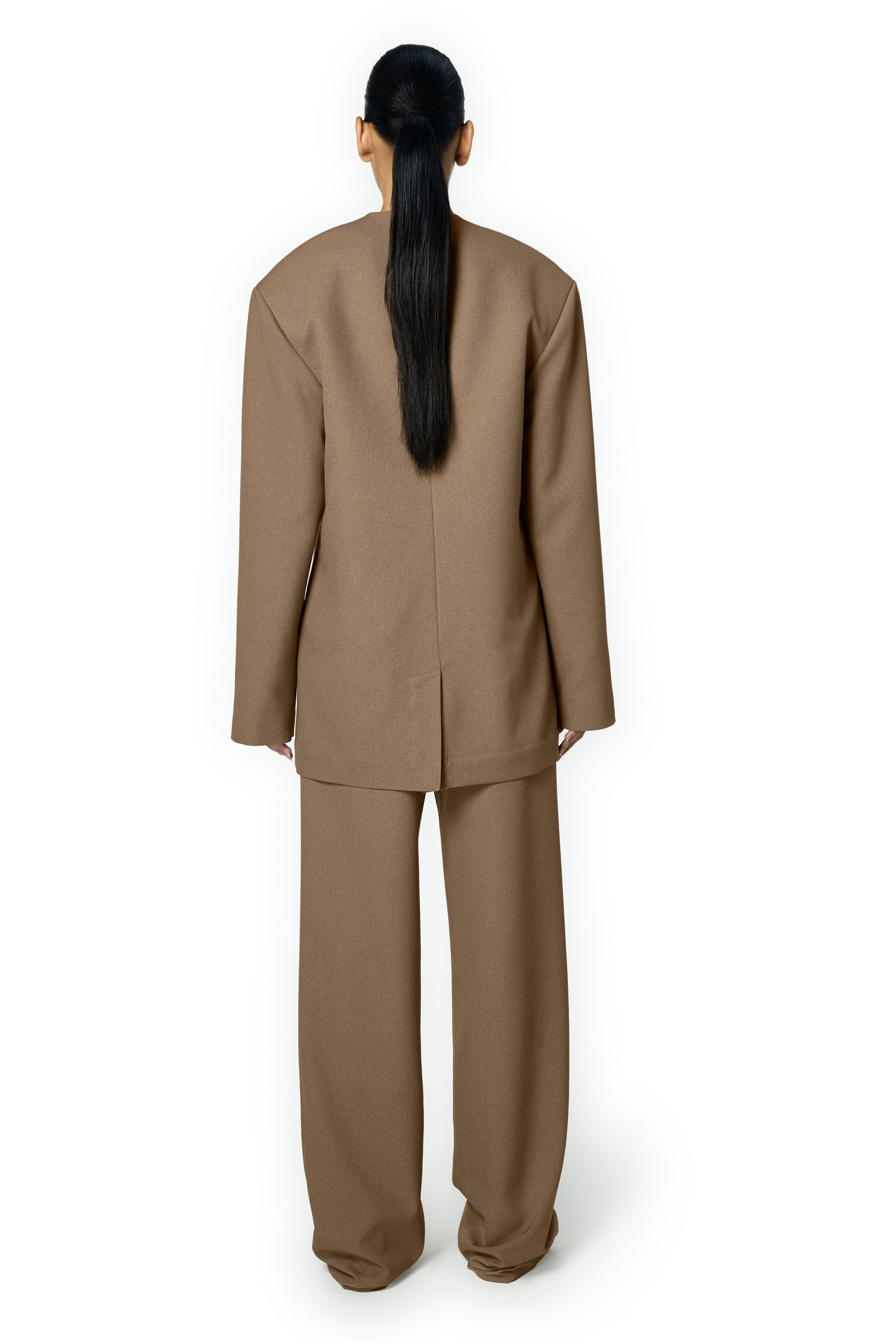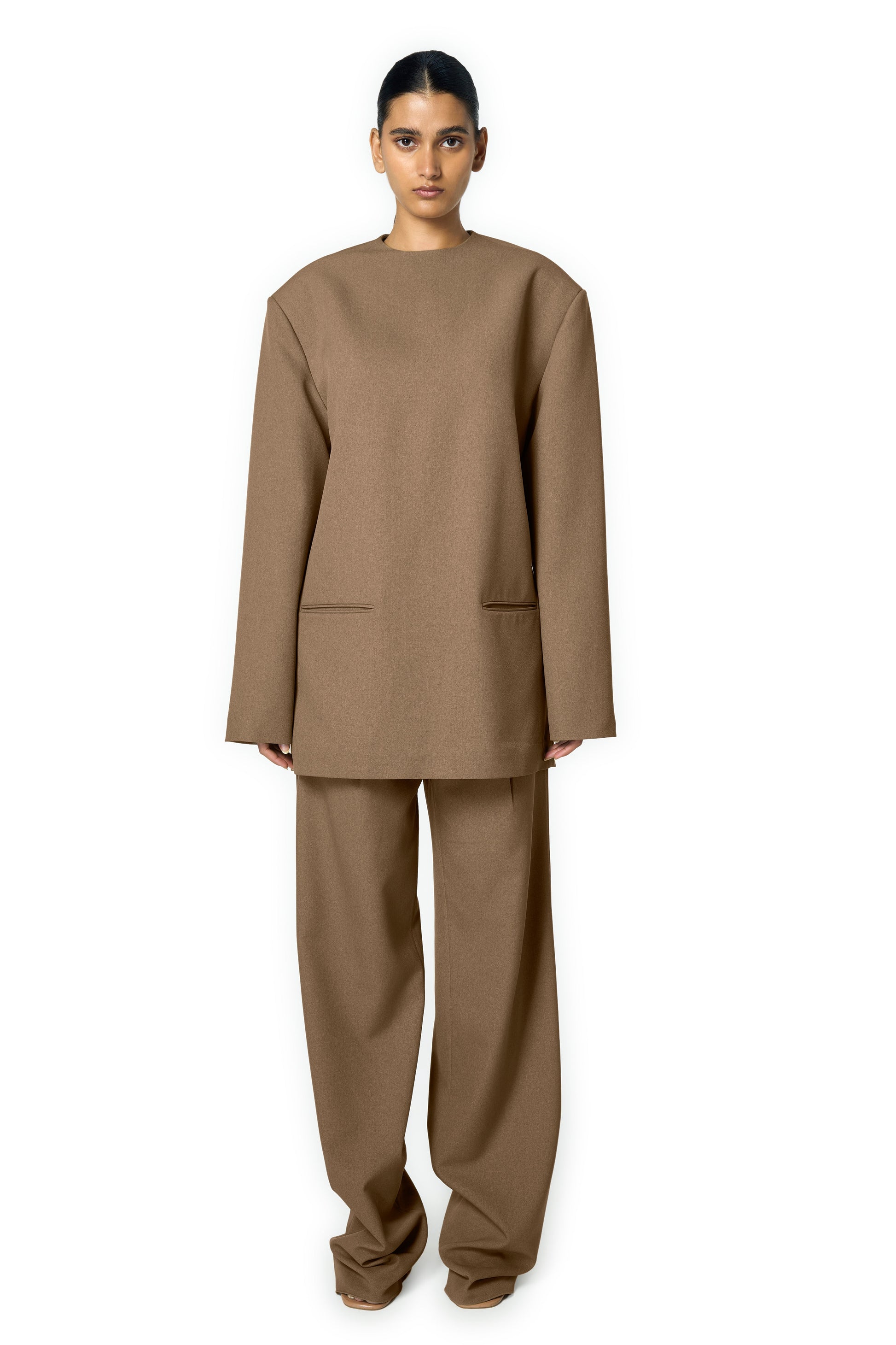 Power dressing done in Ura's classic minimalist style. The Toni Top features a simple round neckline and structured shoulders, giving the top a distinct, powerful shape. It also has two large, simple pockets on the front, adding a functional and minimalist detail. Pair it with the Toni Trousers for a complete look, or wear it on its own, as a mini dress.