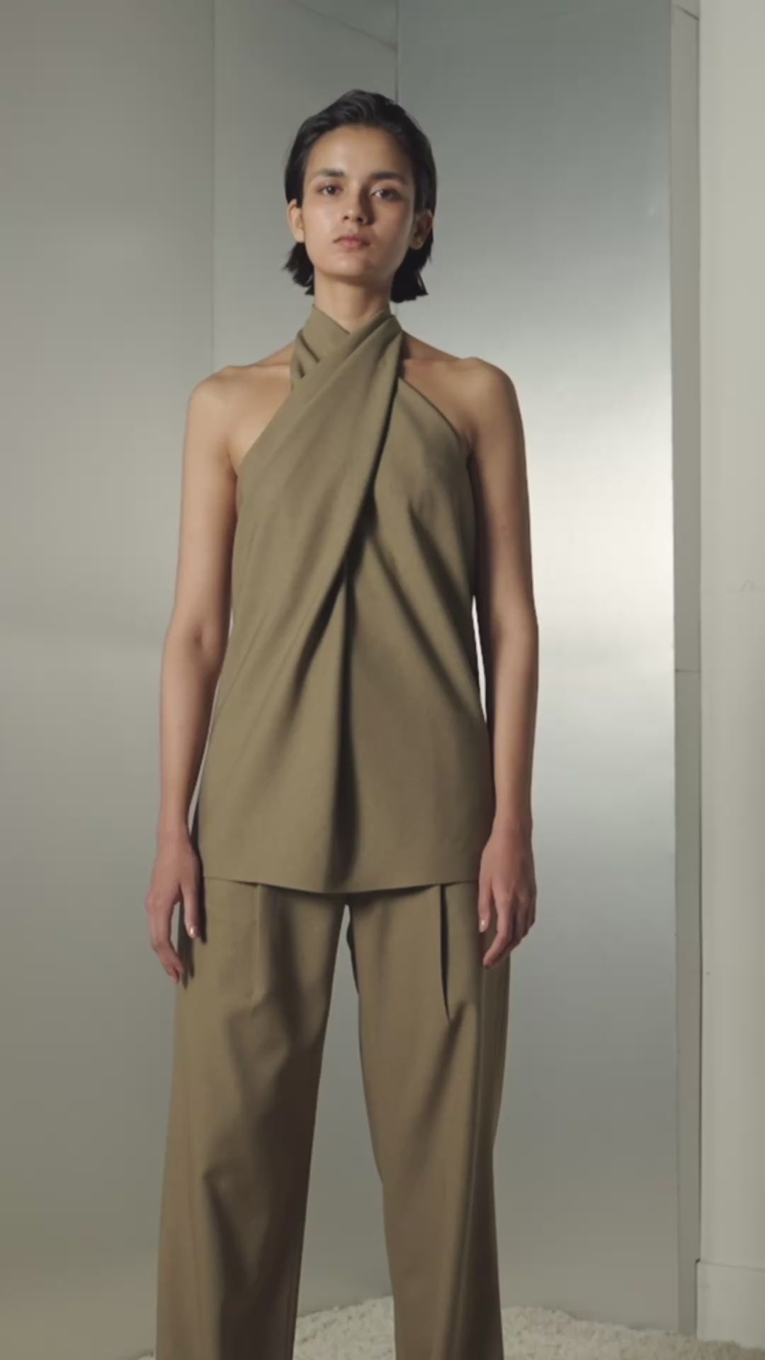 • The wide-leg silhouette drapes to the floor for a modern, elongated look.